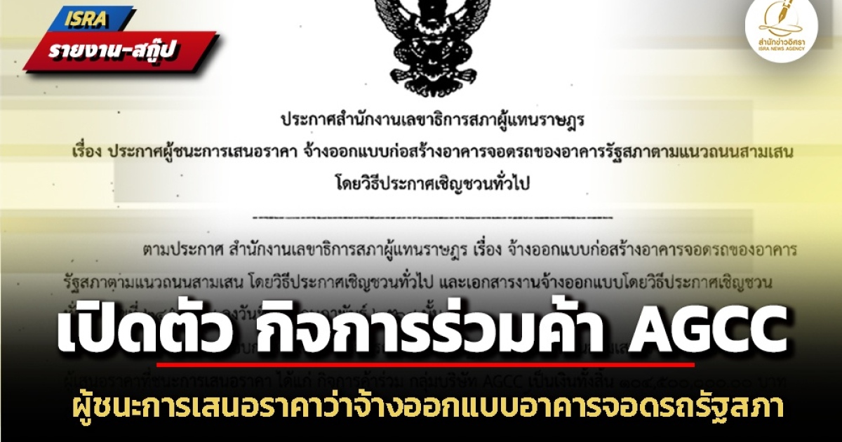 “…แหล่งข่าวจากวงการออกแบบเปิดเผยสำนักข่าวอิศราว่า กลุ่มกิจการร่วมค้า AGCC ประกอบด้วย 3 บริษัท ได้แก่ บริษัท คือ บริษัท เกทเวย์ อาร์คิเท็ค จำกัด บริษัท ซี.ซี.ดับบลิว จำกัด และ บริษัท อาติเตคส์ แอนด์ แอสโซซิเอทส์ จำกัด โดยมีรายละเอียดผู้ถือหุ้น งบการเงิน กำไร-ขาดทุน ที่แจ้งไว้กับกรมพัฒนาธุรกิจการค้า มีดังนี้…”