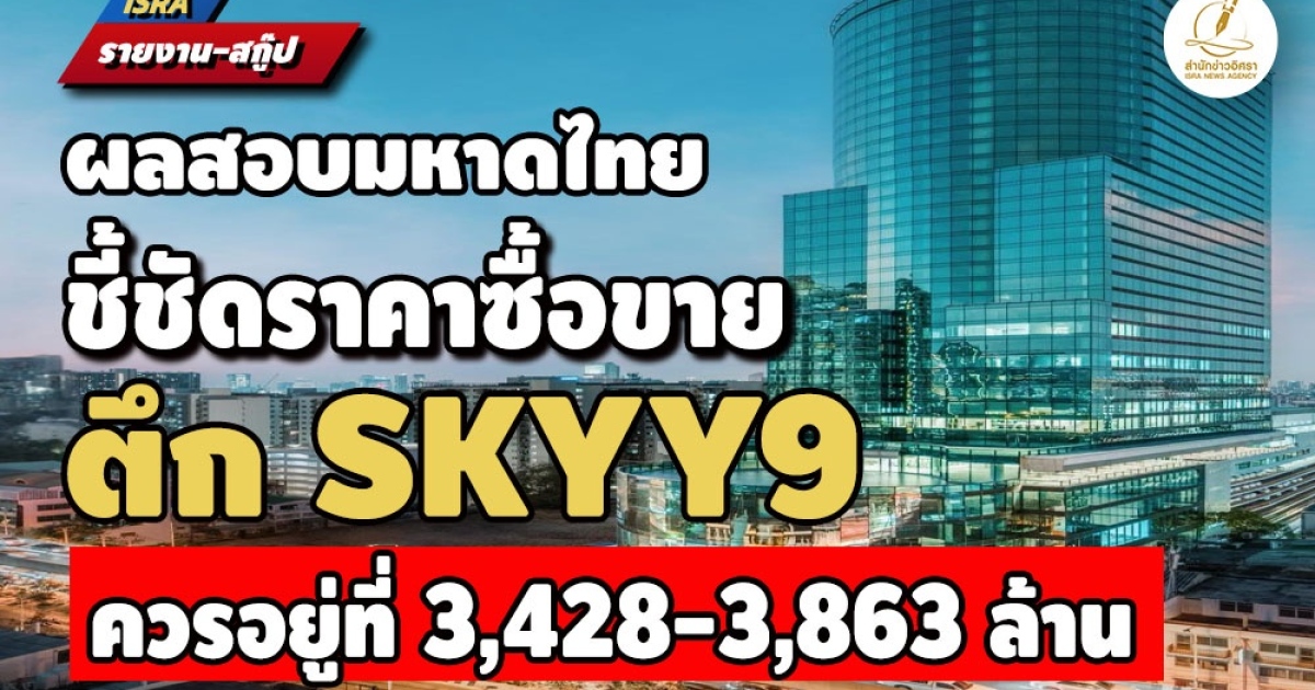 เปิดผลสอบ ก.มหาดไทย ศึกษา-วิเคราะห์ราคาอาคาร SKYY9 หลัง สปส.ควักเงินจ่าย 7 พันล้าน พบราคาซื้อขายขณะนั้น ควรมีค่า ในช่วงประมาณ 3,428,000,000-3,863,000,000 บาท
