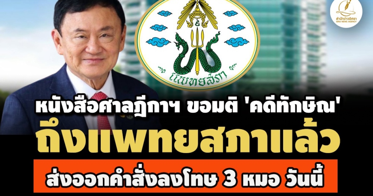 แหล่งข่าวจากแพทยสภา เปิดเผยสำนักข่าวอิศรา (www.isranews.org) ถึงความคืบหน้าการดำเนินการตามมติคณะกรรมการแพทยสภาลงโทษแพทย์ 3 ราย ที่เกี่ยวข้องกับการรักษาตัวของนายทักษิณ ชินวัตร อดีตนายกรัฐมนตรี ว่า ขณะนี้คณะกรรมการบริหารแพทยสภา ได้จัดทำคำสั่งลงโทษเสร็จเรียบร้อยแล้ว เนื้อหาจำนวน 40 หน้า คาดว่าจะสามารถส่งออกคำสั่งลงโทษให้แพทย์แต่ละคนทั้ง 3 ราย รับทราบได้ ในวันที่ 20 มิถุนายน 2568 นี้