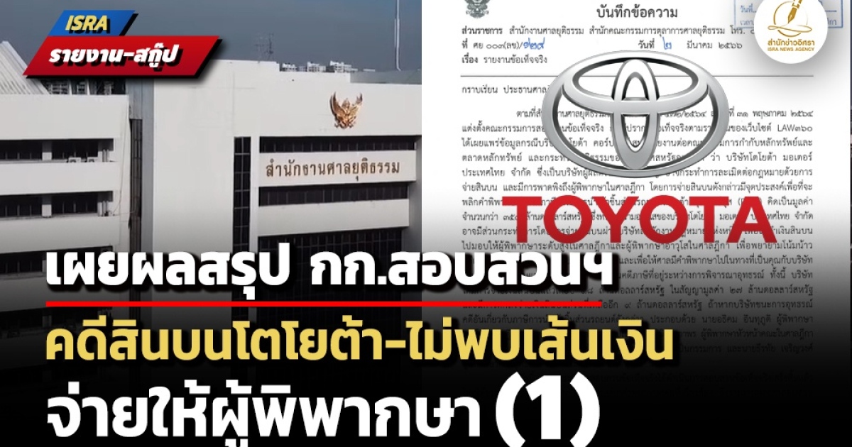 ศาลยุติธรรม แจงคดีสินบนโตโยต้า หากมีผู้พิพากษาทุจริตจริงจะลงโทษอย่างเด็ดขาด!