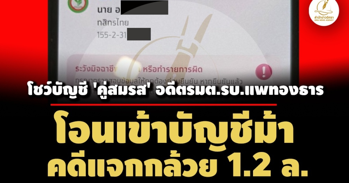 ล่าสุด สำนักข่าวอิศรา ได้รับการยืนยันข้อมูลเป็นทางการว่า บัญชีธนาคารของ นาย อ. ที่โอนเงินจำนวน 1,200,000 บาท เข้าไปในบัญชีของ นาย ร. ดังกล่าว เป็นบัญชีธนาคารกสิกรไทย เลขบัญชี 155-2-31XXXX