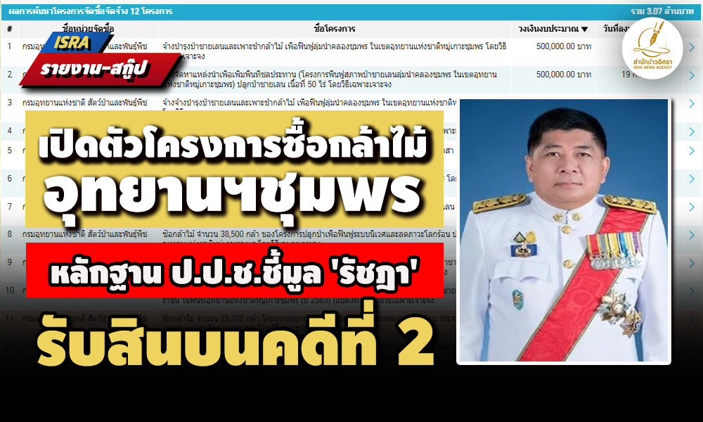 • เปิดตัวโครงการซื้อกล้าไม้อุทยานฯชุมพร หลักฐาน ป.ป.ช.ชี้มูล 'รัชฎา' รับสินบนคดีที่ 2