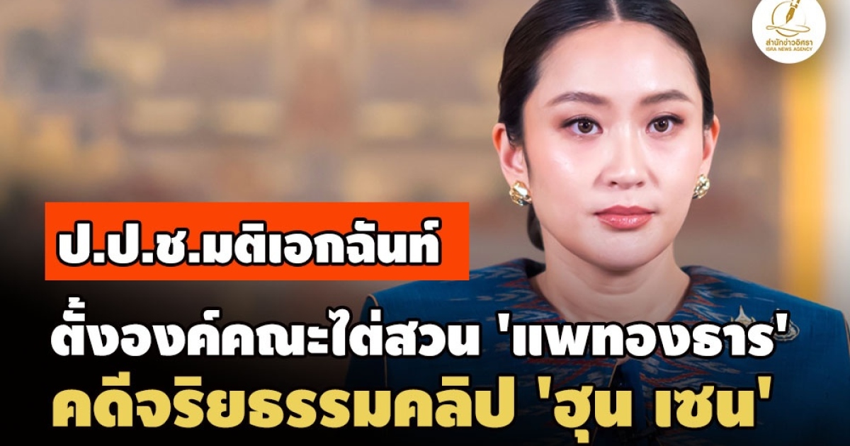 ป.ป.ช. ลงมติมติเอกฉันท์ตั้งองค์คณะไต่สวน 'แพทองธาร ชินวัตร' นายกรัฐมนตรี คดีจริยธรรมคลิปเจรจรา 'ฮุน เซน' มอบหมาย 'สุชาติ ตระกูลเกษมสุข' ประธาน-'ประภาศ คงเอียด' ร่วมเป็นองค์คณะไต่สวน
