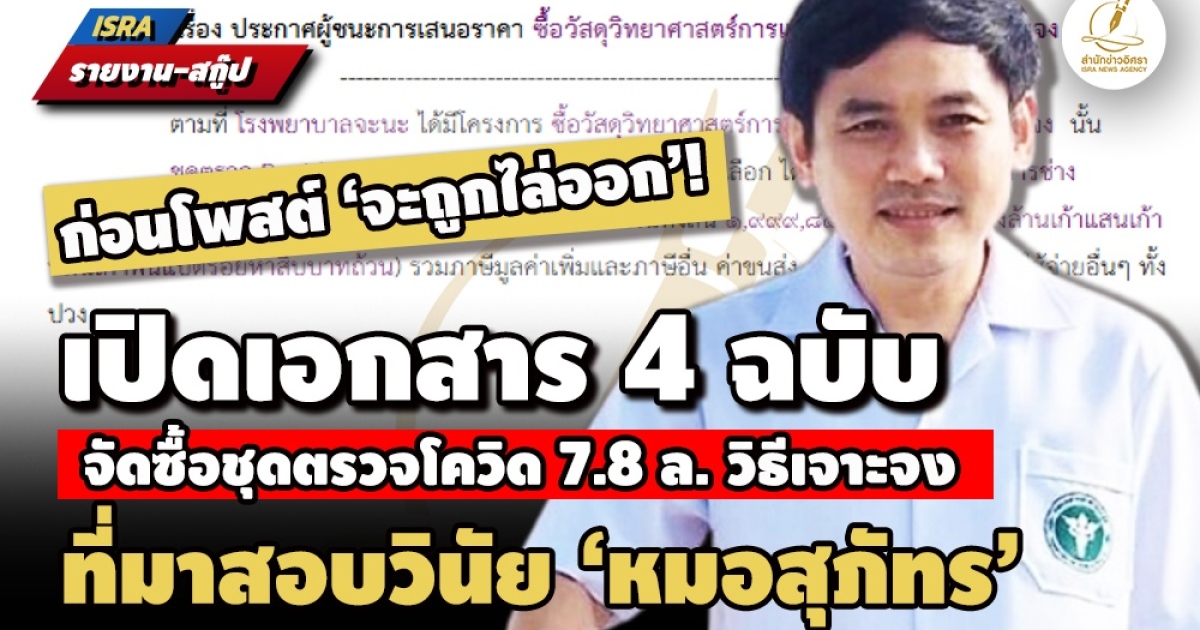 ก่อนโพสต์ ‘จะถูกไล่ออก’! เปิดเอกสารประกาศผู้ชนะเสนอราคา 4 ฉบับ จัดซื้อชุดตรวจ Rapid Test 34,159 ชุด วิธีเฉพาะเจาะจง รพ.จะนะ - บ.นำวิวัฒน์ฯ 7.8 ล. ช่วงปี 2564 ที่มาปมตั้ง กก.สอบวินัยร้ายแรง นพ.สุภัทร ฮาสุวรรณกิจ พบทำสัญญาก่อน 3 ครั้ง ออกประกาศตามหลัง