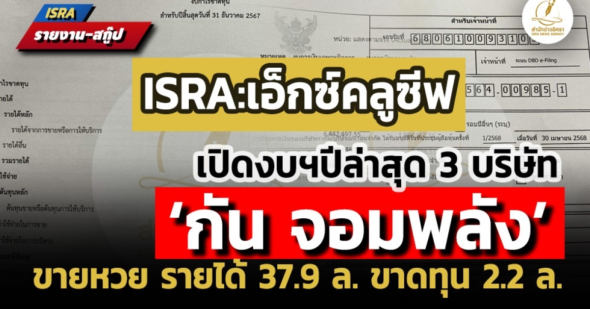 • เปิดงบฯปีล่าสุด 3 บริษัท‘กัน จอมพลัง’/ ขายหวย รายได้ 37.9 ล. ขาดทุน 2.2 ล.