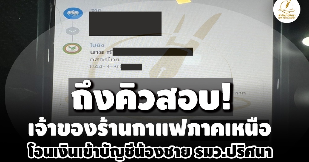 เกาะติด! ป.ป.ช.ตามแกะรอยเส้นทางเงิน 20 ล้าน เข้าบัญชี รมว.ปริศนา ล่าสุด พบเจ้าของร้านกาแฟ ในจังหวัดภาคเหนือ โอนเข้าบัญชีน้องชายคนขับรถด้วย 1 แสน ช่วงปี 64 เผยเชิญเจ้าตัวมาให้ถ้อยคำแล้ว อ้างพ่อเป็นคนสั่งให้ดำเนินการ