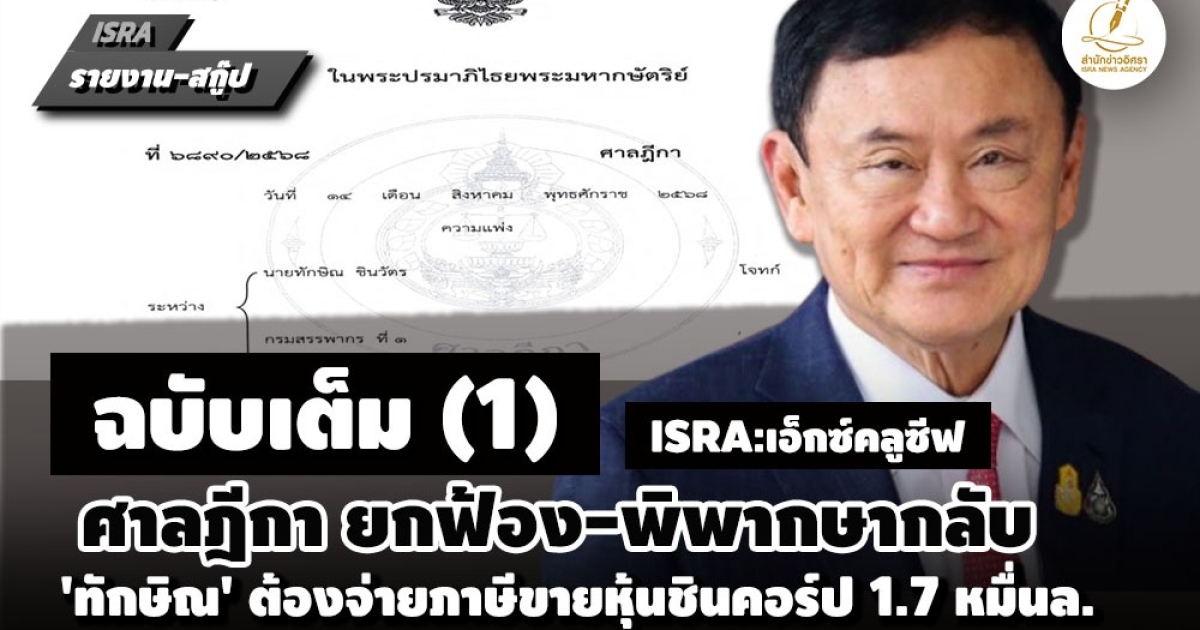 คือ บทสรุปคำพิพากษาศาลฎีกา ที่ตัดสินในคดีที่นายทักษิณ ชินวัตร อดีตนายกรัฐมนตรี เป็นโจทก์ยื่นฟ้องกรมสรรพากร (จำเลยที่ 1) และคณะกรรมการพิจารณาอุทธรณ์ ได้แก่ นายพงษ์ศักดิ์ เมธาพิพัฒน์ ,นายประภาส สนั่นศิลป์ และนายพิสิทธิ์ ศรีวรานันท์ (จำเลยที่ 2-4) ต่อศาลภาษีอากรกลาง เพื่อขอให้ศาลพิพากษาหรือมีคำสั่งให้เพิกถอนการประเมินตามหนังสือแจ้งภาษีเงินได้บุคคลธรรมดาฯ ที่แจ้งให้นายทักษิณ จ่ายภาษีเงินได้บุคคลธรรมดาจากการขายหุ้นชิน คอร์ปอเรชั่นฯ ให้กับกรมสรรพากร เป็นเงิน 1.76 หมื่นล้านบาท เมื่อวันที่ 17 พฤศจิกายน 2568 ที่ผ่านมา
