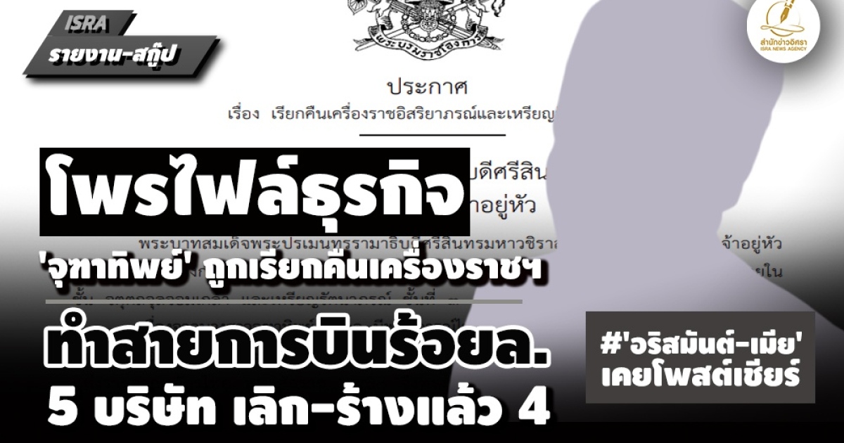 ทั้งหมดนี้ คือ ข้อมูลทางธุรกิจที่สำนักข่าวอิศรา พอจะสืบค้นได้ของนางสาว จุฑาทิพย์ วิลาด ที่เพิ่งถูกประกาศเรียกคืนเครื่องราชอิสริยาภรณ์จุลจอมเกล้า ฝ่ายในชั้น จตุตถจุลจอมเกล้า และเหรียญรัตนาภรณ์ ชั้นที่ 3 เนื่องจากมีพฤติการณ์ไม่เหมาะสม อย่างยิ่งในการที่จะได้รับพระราชทานเครื่องราชอิสริยาภรณ์และเหรียญรัตนาภรณ์ ที่ปรากฏเป็นข่าวดังอยู่ในขณะนี้