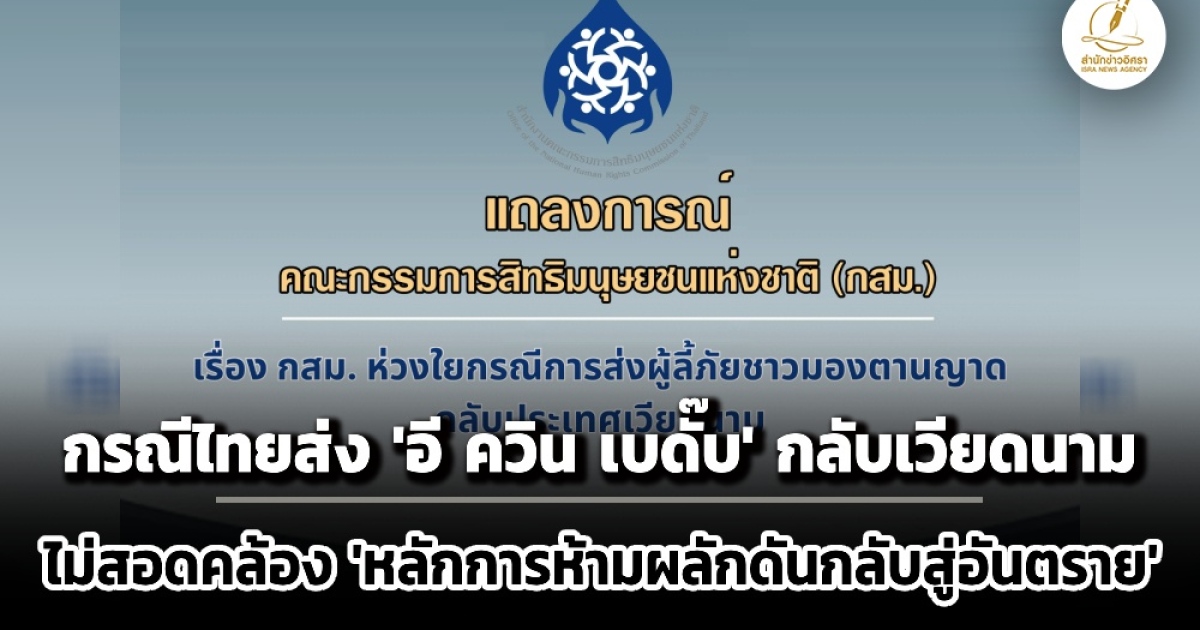 • กสม.ชี้กรณีไทยส่ง 'อี ควิน เบดั๊บ' กลับเวียดนามไม่สอดคล้อง 'หลักการห้ามผลักดันกลับสู่อันตราย'