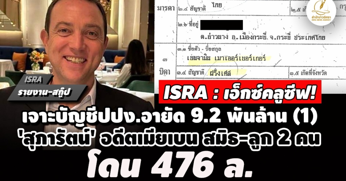 • เจาะบัญชีปปง.อายัด 9.2 พันล้าน (1) 'สุภารัตน์' อดีตเมียเบน สมิธ-ลูก 2 คน โดน 476 ล.