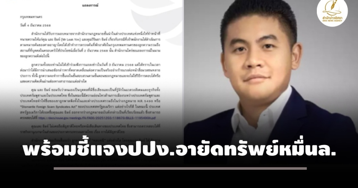 • ทนายความ ‘ยิม เลียก-ภรรยา’ ออกแถลงการณ์พร้อมชี้แจงปปง.อายัดทรัพย์หมื่นล.-ยันไม่เคยรู้จักแตงไทย