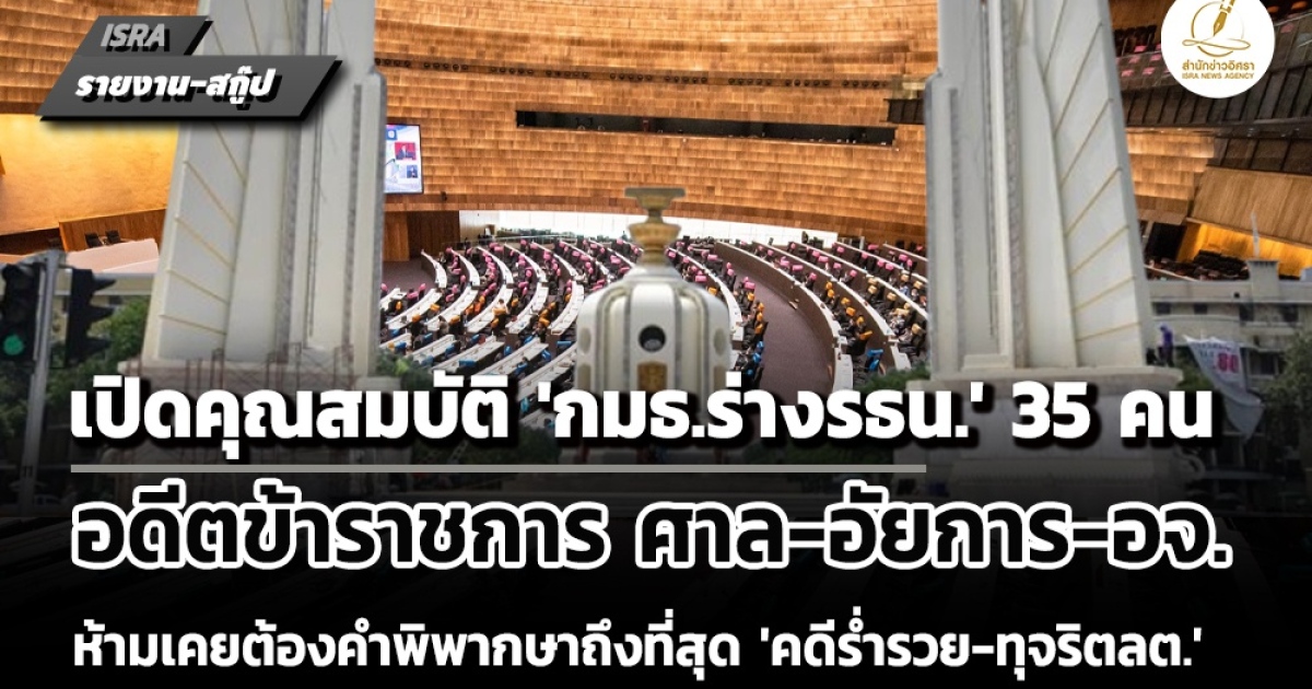 หมายเหตุ : สำนักข่าวอิศรา (www.isranews.org) วันที่ 10 ธันวาคม 2568 ที่ประชุมร่วมกันของรัฐสภา ครั้งที่ 1 (สมัยวิสามัญ) เป็นพิเศษ มีมติเห็นชอบร่างรัฐธรรมนูญแห่งราชอาณาจักรไทย แก้ไขเพิ่มเติม (ฉบับที่ ..) พ.ศ. .... มาตรา 256/1 ให้ตั้งคณะกรรมาธิการ (กมธ.) เพื่อจัดทำรัฐธรรมนูญฉบับใหม่ จำนวน 2 คณะ ประกอบด้วย 1. กมธ.ร่างรัฐธรรมนูญ และ 2. กมธ.รับฟังความคิดเห็นและส่งเสริมการมีส่วนร่วมของประชาชนในการร่างรัฐธรรมนูญ คณะละ 35 คน