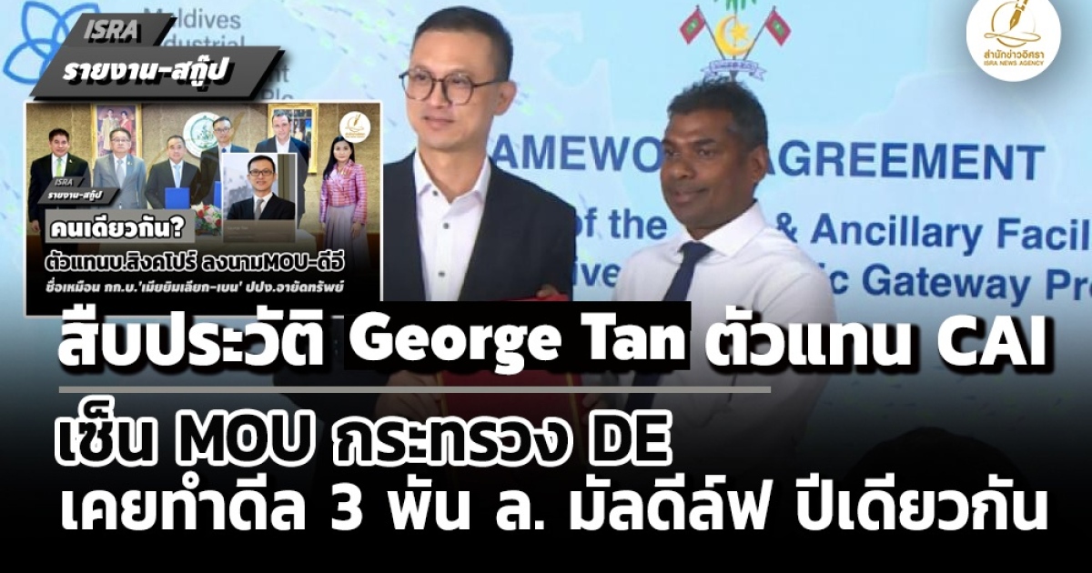 "...นาย George Tan มีประวัติไปเป็นตัวแทนของบริษัท CAI ในการเซ็นข้อตกลงพัฒนาท่าเรือกับทางประเทศมัลดีล์ฟ โดยโครงการดังกล่าวเป็นโครงการชื่อว่าโครงการ Maldives Industrial Development Free Zone (MIDFZ) เป็นโครงการยุทธศาสตร์ระดับชาติของมัลดีฟส์ภายใต้ชื่อหลักว่า "Maldives Economic Gateway Project" โดยมีเป้าหมายเพื่อกระจายเศรษฐกิจของประเทศและเปลี่ยนเกาะที่ตั้งโครงการให้เป็นศูนย์กลางการค้าและโลจิสติกส์ที่สำคัญในมหาสมุทรอินเดีย ..."