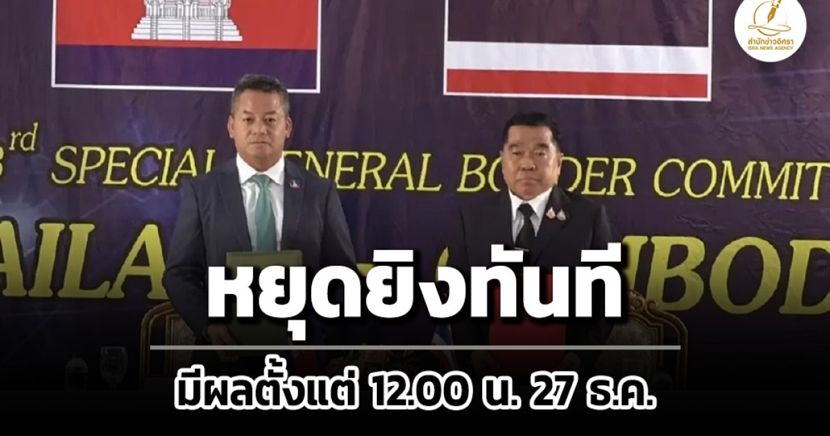 สำนักข่าวอิศรา (www.isranews.org) รายงานว่า เมื่อวันที่ 27 ธันวาคม 2568 คณะกรรมการชายแดนทั่วไปกัมพูชา-ไทย (GBC) พล.อ.ณัฐพล นาคพาณิชย์ รัฐมนตรีว่าการกระทรวงกลาโหม พล.อ.เตรียเซยฮา รัฐมนตรีว่าการกระทรวงกลาโหมกัมพูชา ร่วมลงนามในถ้อยแถลงร่วม Joint Statement ดังนี้