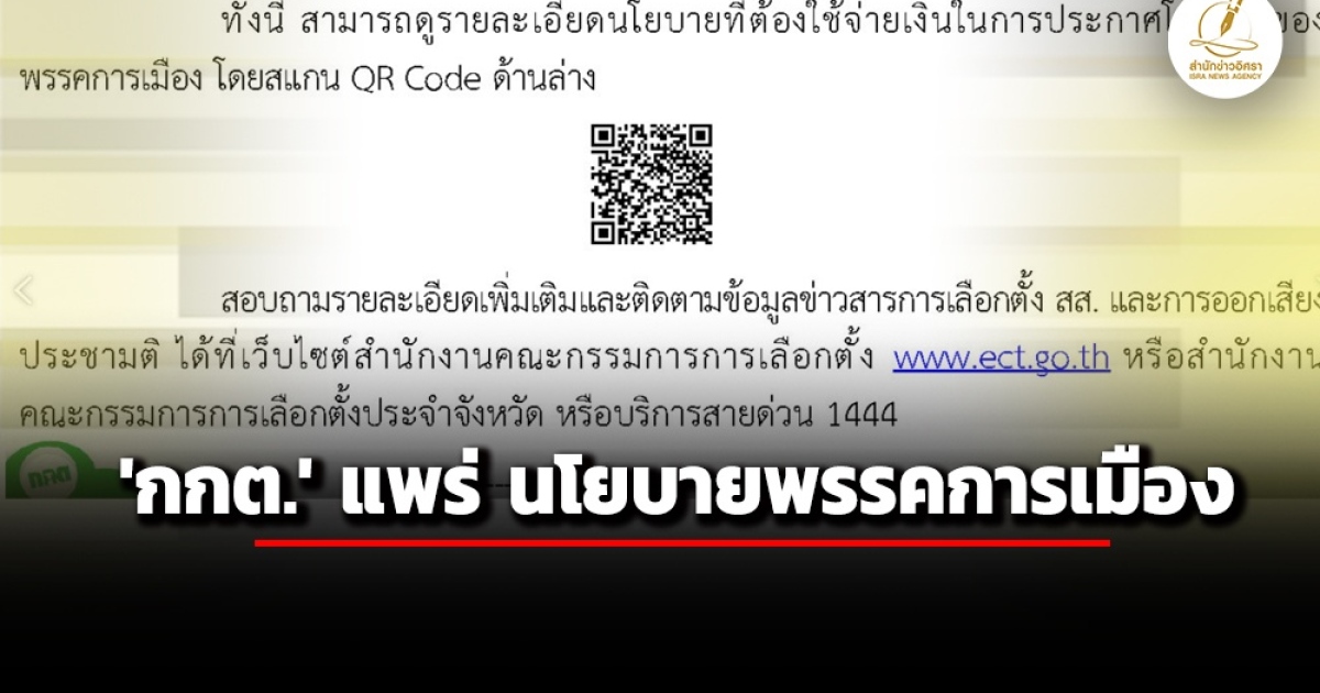 สำนักงาน กกต. เผยแพร่นโยบายของพรรคการเมืองที่ต้องใช้จ่ายเงินในการประกาศโฆษณาเพื่อให้ประชาชนตัดสินใจ เบื้องต้น จำนวน 51 พรรคการเมือง