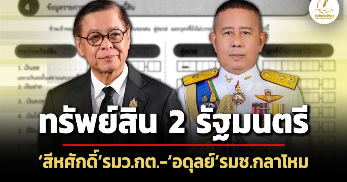 สำนักข่าวอิศรา (www.isranews.org) รายงานว่า เมื่อวันที่ 10 ก.พ. 2569 สำนักงานคณะกรรมการการป้องกันและปราบการทุจริตแห่งชาติ (ป.ป.ช.) เปิดเผยบัญชีแสดงรายการทรัพย์สินและหนี้สิน รัฐมนตรี กรณีเข้ารับตำแหน่ง 2 ราย คือ นายสีหศักดิ์ พวงเกตุแก้ว รัฐมนตรีว่าการกระทรวงการต่างประเทศ และพลโทอดุลย์ บุญธรรมเจริญ รัฐมนตรีช่วยว่าการกระทรวงกลาโหม
