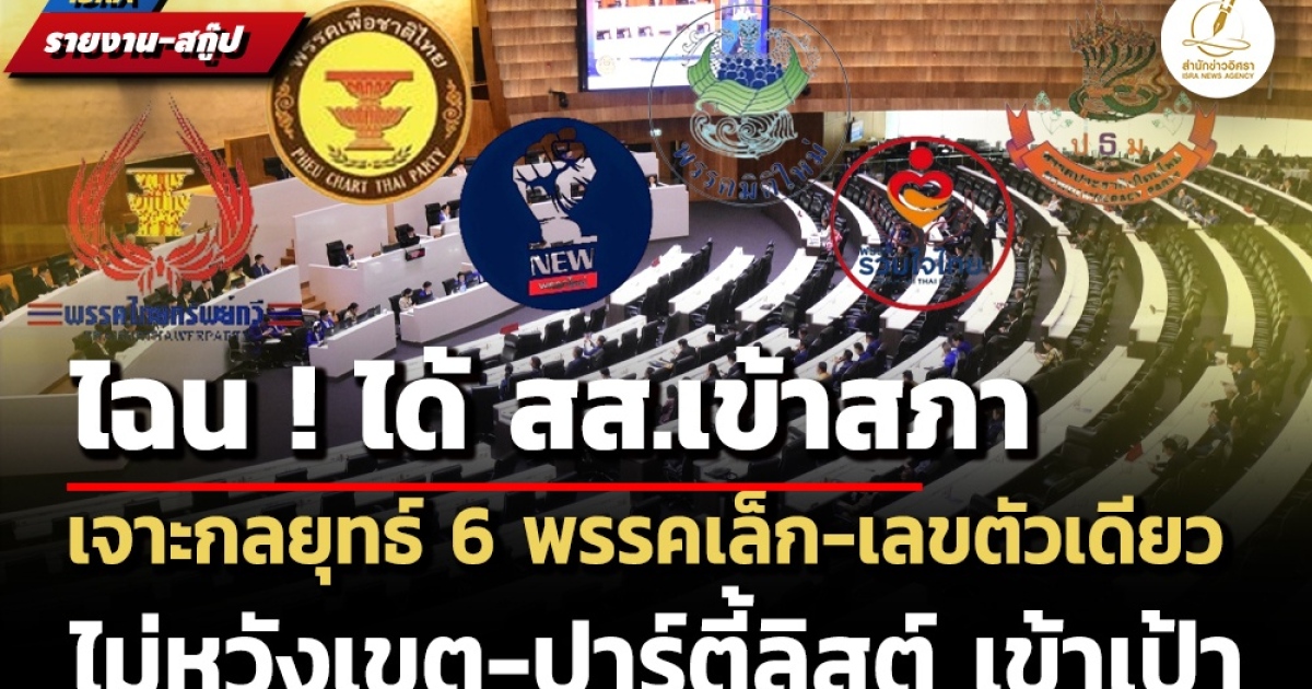 สำนักข่าวอิศรา (www.isranews.org) ตรวจสอบบนฐานข้อมูลอ้างอิง 2 แหล่ง (https://ectreport69.ect.go.th/overview / https://www.thaipbs.or.th/election69/result?tab=summary) พบว่า 6 พรรคการเมืองที่ได้ สส.บัญชีรายชื่อ (ปาร์ตี้ลิสต์) จำนวน 1-2 ที่นั่ง นอกจากเป็นพรรคที่จับได้ ‘เลขตัวเดียว’ แล้ว (มีการตั้งข้อสังเกตว่า เพราะสาเหตุใดพรรคการเมืองที่อยู่ลำดับต้นๆ ถึงได้คะแนนปาร์ตี้ลิสต์จำนวนมาก) ยังพบว่า 5 ใน 6 พรรค ส่งผู้สมัคร สส.แบบแบ่งเขตเลือกตั้ง 1 – 2 คน มากสุด คือ 6 คน มีเพียงพรรคประชาธิปไตยใหม่ ที่ส่งผู้สมัคร สส.เขต 68 คน โดยที่มีรูปแบบการส่งผู้สมัคร สส.เขต คล้ายกันก็คือ ส่วนใหญ่จะไม่มีผู้สมัคร สส.เขต ในพื้นที่ที่ได้คะแนนปาร์ตี้ลิสต์มากที่สุด 20 อันดับแรก ส่วนพรรคส่งผู้สมัคร สส.เขตจะได้คะแนนเพียง ‘หลักร้อย’ สวนทางกับคะแนนปาร์ตี้ลิสต์ที่ได้รับ ‘หลักพันคะแนน’