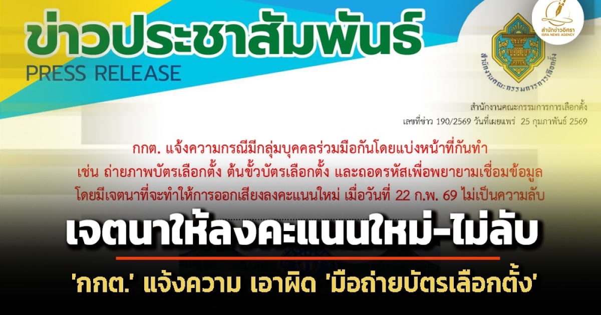 • 'กกต.' แจ้งความ 'กองปราบ' เอาผิดกลุ่มคนถ่ายบัตร-ต้นขั้วเลือกตั้ง เจตนาให้ลงคะแนนใหม่-ไม่ลับ