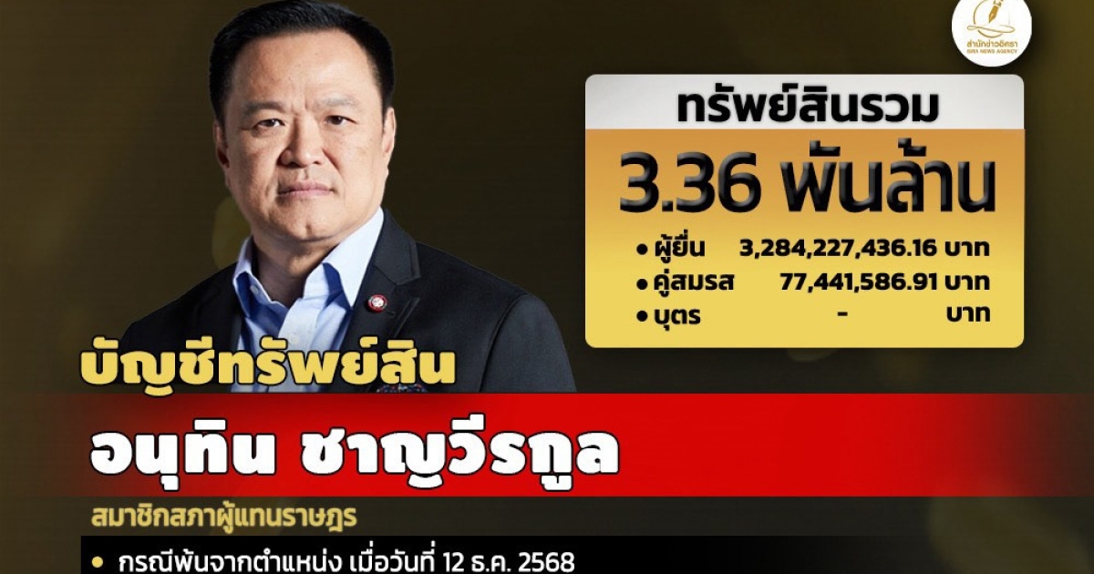 • INFO: ทรัพย์สิน 3.36 พัน ล. 'อนุทิน ชาญวีรกูล' พ้น สส.บัญชีรายชื่อ พรรคภูมิใจไทย