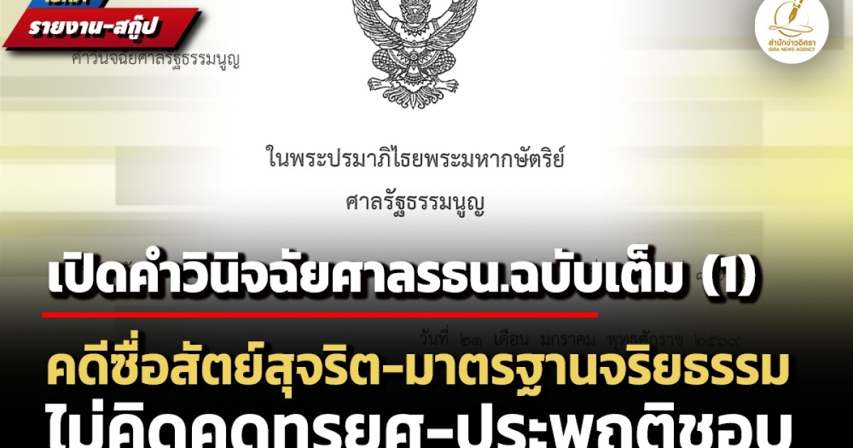 สำนักข่าวอิศรา (www.isranews.org) ขอนำคำวินิจฉัยฉบับเต็มมานำเสนอ อย่างไรก็ดี เนื่องจากคำวินิจฉัยมีจำนวน 65 หน้า จึงขอนำเสนอเฉพาะการพิจารณาและวินิจฉัยประเด็นหลักแห่งคดี โดยแบ่งออกเป็นตอน เริ่มตอนนี้ เป็นตอนแรก
