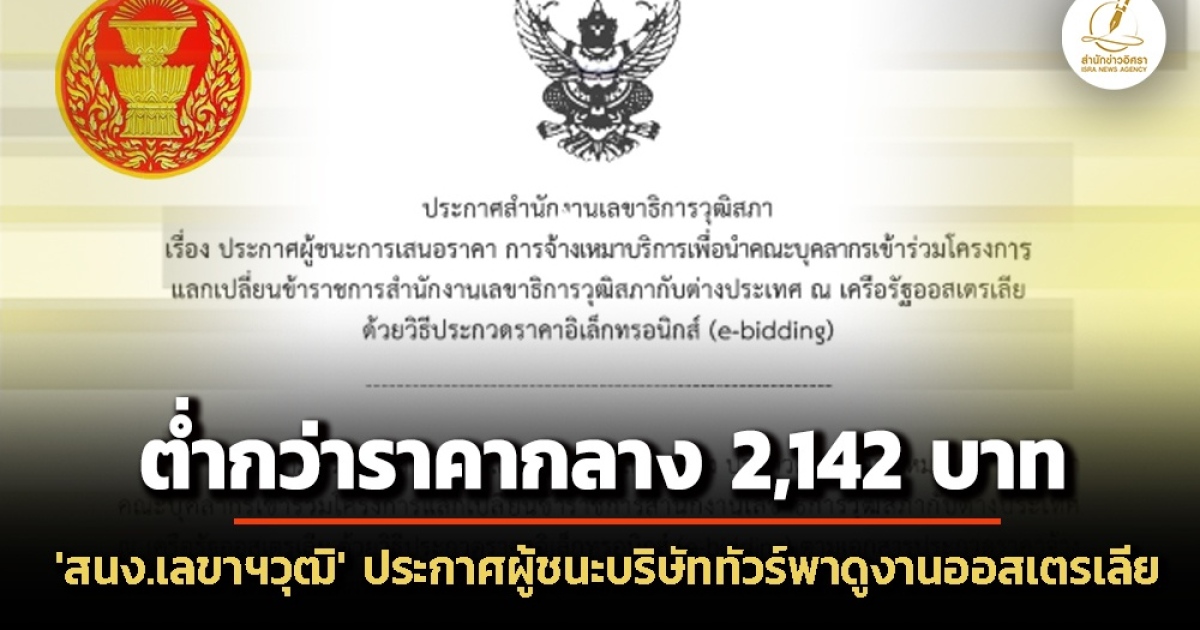 สำนักงานเลขาธิการวุฒิสภา ประกาศผู้ชนะการเสนอราคาจ้างเหมาบริษัททัวร์พาผู้บริหาร-คณะบุคลากรศึกษาดูงานต่างประเทศแล้ว 2 บริษัท – ออสเตรเลีย ต่ำกว่าราคา 2,142 บาท ขณะที่จีน ต่ำกว่าราคากลาง 111,400 บาท