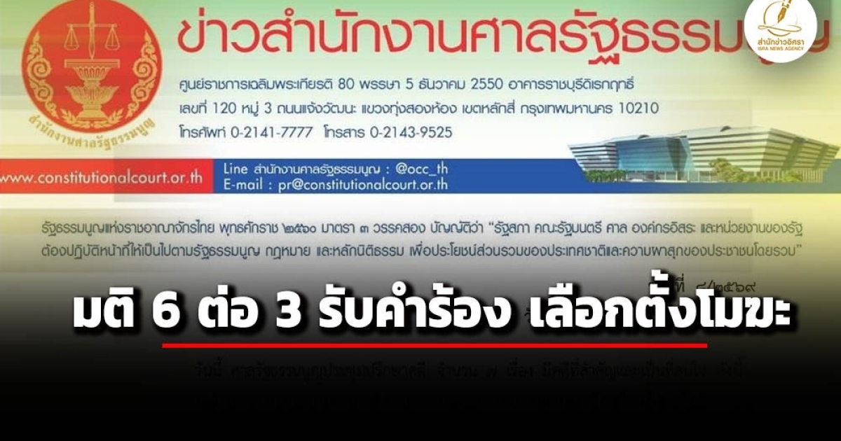 ศาลรัฐธรรมนูญ มีมติ 6 ต่อ 3 รับคำร้องไว้พิจารณาวินิจฉัย เลือกตั้งสส. 8 ก.พ.69 ไม่เป็นไปโดยลับ ขัดรัฐธรรมนูญหรือไม่ - สั่ง 'กกต.' ทำคำชี้แจงแก้ข้อกล่าวหา-พยานหลักฐาน ภายใน 15 วัน