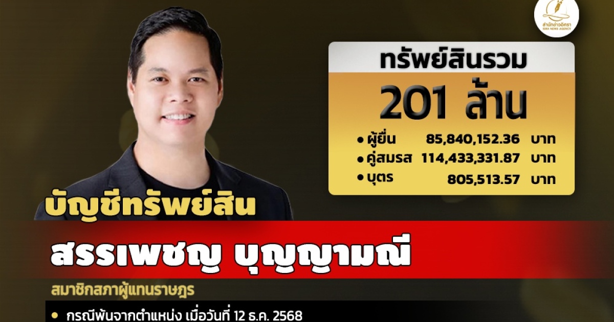 • INFO: ทรัพย์สิน 201.07 ล้าน 'สรรเพชญ บุญญามณี' พ้นตำแหน่ง สส. ถือหุ้นธุรกิจอาหาร 40 ล.