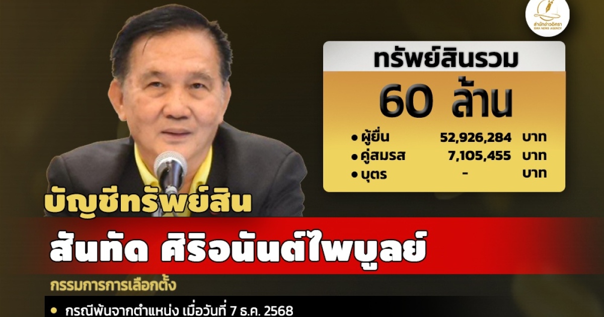 สำนักงานคณะกรรมการการป้องกันและปราบการทุจริตแห่งชาติ (ป.ป.ช.) เปิดเผยบัญชีแสดงรายการทรัพย์สินและหนี้สินของ นายสันทัด ศิริอนันต์ไพบูลย์ กรณีพ้นจากตำแหน่งผู้ดำรงตำแหน่งกรรมการการเลือกตั้ง (กกต.)