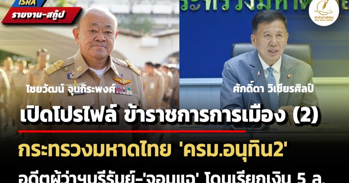 เปิดโปรไฟล์ข้าราชการการเมืองกระทรวงมหาดไทย ‘ไชยวัฒน์ จุนถิระพงศ์-อดีตผู้ว่าราชการจังหวัดบุรีรัมย์’ นั่ง เลขานุการรัฐมนตรีว่าการกระทรวงมหาดไทย – ศักดิ์ดา วิเชียรศิลป์ ‘จอมแฉ’ ถูกเรียกเงิน 5 ล้านแลกผ่านงบกรมทรัพยากรน้ำบาดาล ปี 64 ที่ปรึกษารัฐมนตรีว่าการกระทรวงมหาดไทย