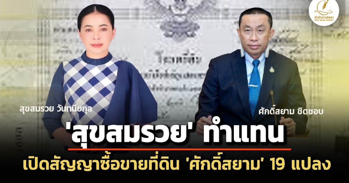 หนังสือสัญญานี้ได้ทำเมื่อวันที่ 23 มิ.ย.2568 ณ สำนักงานที่ดินจังหวัดบุรีรัมย์ สาขาสตึก ระหว่าง นายศักดิ์สยาม ชิดชอบ (โดยนางสุขสมรวย วันทนียกุล แทน) กับ นายศุภวัฒน์ เกษมสุทธิ์ (โดย ร.ต.ต. สุขุม สุปันนะเวช แทน)