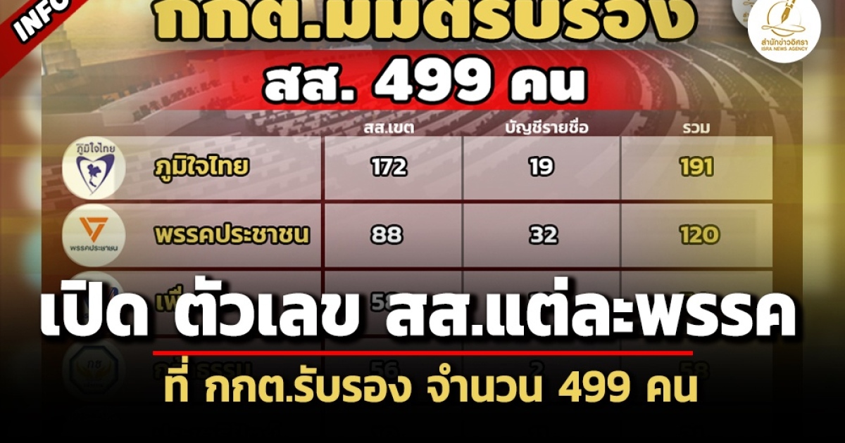 - ครบ 499 คน ! กกต.รับรองผลเลือกตั้ง สส. บัญชีรายชื่อ 100 - 3 เขต