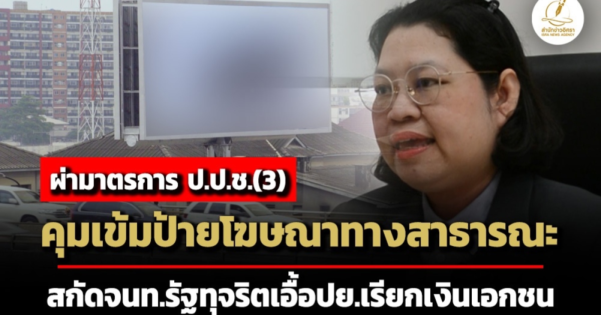 "...ปัญหาป้ายโฆษณาผิดกฎหมายบนทางสาธารณะยังคงมีอยู่ทั่วไป ก่อให้เกิดความไม่เป็นระเบียบเรียบร้อย อันตรายต่อประชาชน บดบังทัศนวิสัย และอาจนำไปสู่การทุจริตของเจ้าหน้าที่รัฐ คณะกรรมการ ป.ป.ช. จึงเสนอมาตรการป้องกันการละเว้นการปฏิบัติหน้าที่ เพื่อป้องกันการทุจริตของเจ้าหน้าที่รัฐเกี่ยวกับการติดตั้งป้ายโฆษณา ปรับปรุงการปฏิบัติราชการ ให้เจ้าหน้าที่รัฐบังคับใช้กฎหมายอย่างจริงจัง และปรับปรุงกฎหมายที่เกี่ยวข้อง สร้างค่านิยมให้ภาคเอกชนและประชาชนปฏิบัติตามกฎหมาย..."