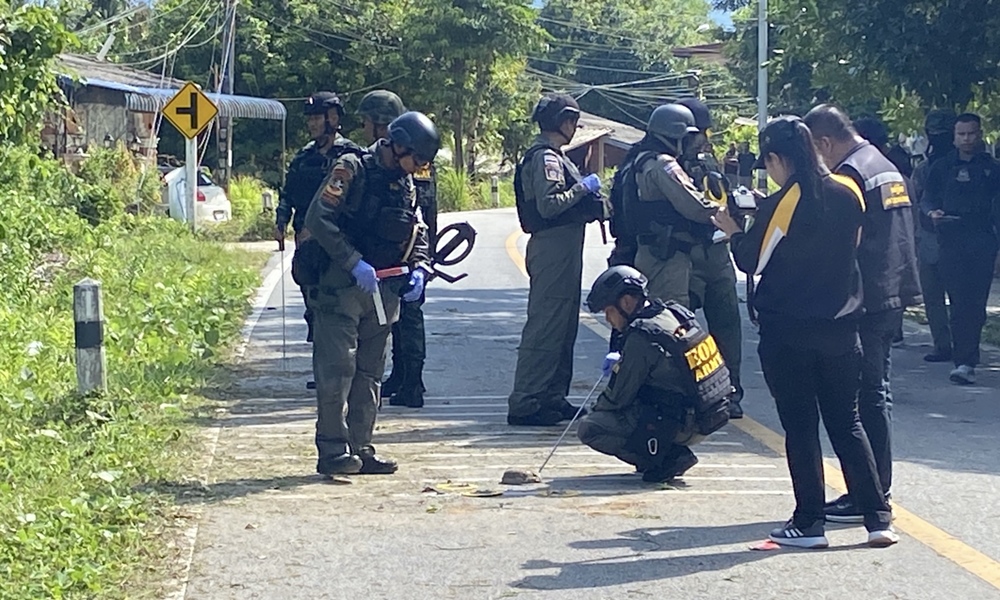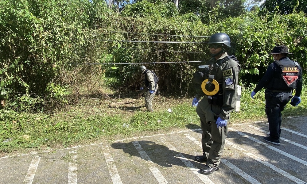 จากการตรวจสอบพื้นที่อย่างละเอียด พบว่าจุดที่คนร้ายนำระเบิดไปวาง เป็นพุ่มไม้รกทึบริมทาง มีหลุมลึก 1 ฟุต กว้าง 2 ฟุต และมีเศษซากชิ้นส่วนของระเบิดแสวงเครื่องที่คนร้ายประกอบใส่ไว้ในท่อเหล็กทรงกลม คาดว่าน้ำหนักดินระเบิดประมาณ 10 กิโลกรัม จุดชนวนด้วยรีโมทคอนโทรล กระจายเกลื่อนพื้นถนน เจ้าหน้าที่จึงเก็บรวบรวมไว้เป็นหลักฐาน