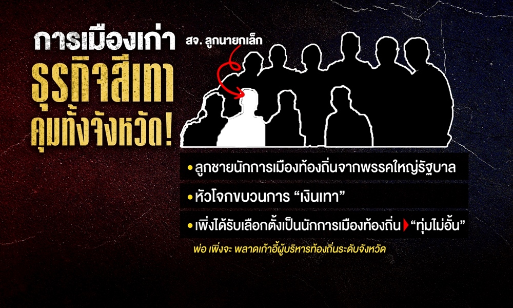 - คนที่สาม “นาย อ.” ลูกชายนักการเมืองท้องถิ่นดนดัง จากพรรคการเมืองใหญ่ในรัฐบาล ชาวบ้านรู้กันดีว่าเป็นหัวโจกขบวนการ “เงินเทา” เพิ่งได้รับเลือกตั้งเป็นนักการเมืองท้องถิ่น โดยมาแบบ “ทุ่มไมอั้น” ขณะที่ผู้เป็นพ่อ เพิ่งพลาดเก้าอี้ผู้บริหารท้องถิ่นระดับจังหวัด เพราะแพ้ในสนามหย่อนบัตรลงคะแนน