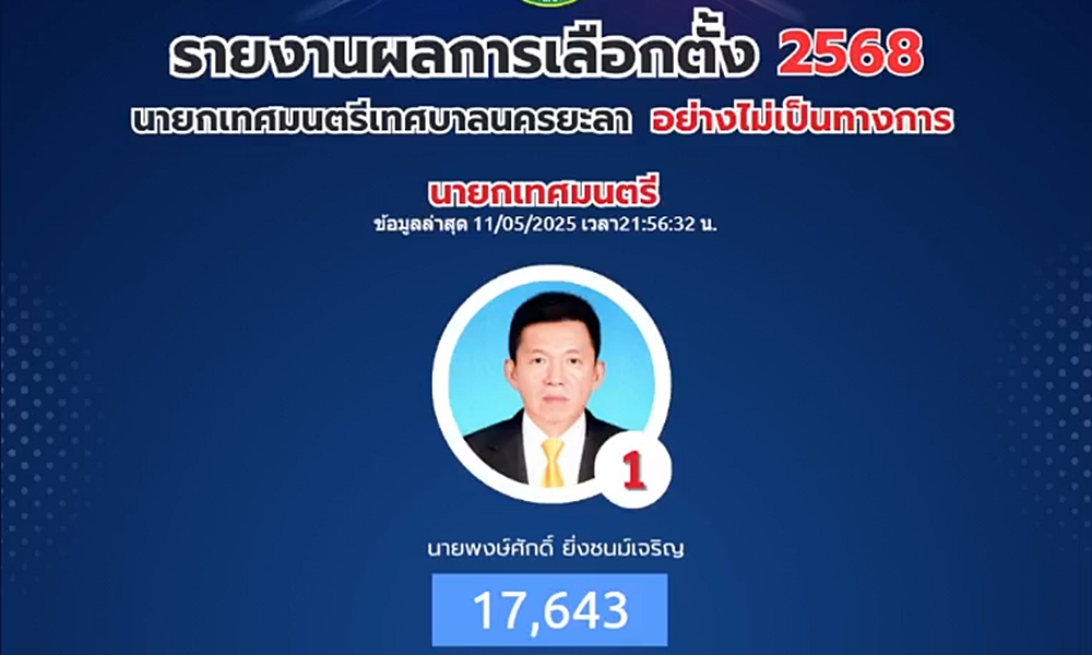 ผลการนับคะแนนอย่างไม่เป็นทางการปรากฏว่า นายพงษ์ศักดิ์ หรือ “นายกฯอ๋า” ได้คะแนน 17,643 คะแนน สามารถครองตำแหน่งนายกเทศมนตรีเทศบาลนครยะลาได้อีก 1 สมัย