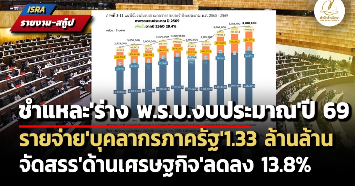 สำนักข่าวอิศรา (www.isranews.org) จึงขอนำเสนอสรุปสาระสำคัญของเอกสารวิชาการ ‘วิเคราะห์ร่าง พ.ร.บ.งบประมาณรายจ่ายประจำปีงบประมาณ พ.ศ.2569’ ของ สำนักงบประมาณของรัฐสภา ดังนี้