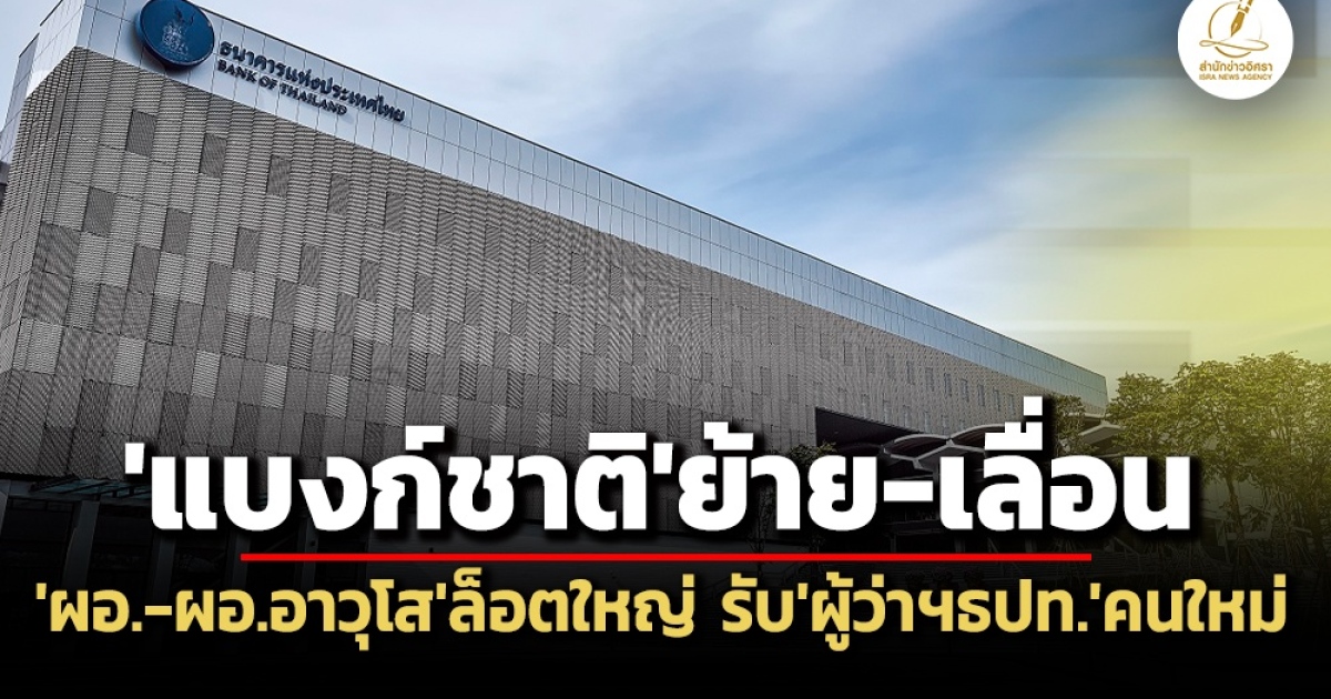 สำนักข่าวอิศรา (www.isranews.org) รายงานว่า เมื่อวันที่ 13 ส.ค.ที่ผ่านมา ธนาคารแห่งประเทศไทย (ธปท.) เผยแพร่ประกาศคำสั่งย้ายและเลื่อนผู้บริหาร ธปท. ระดับ ผู้อำนวยการอาวุโสและผู้อำนวยการ รวมทั้งสิ้น 26 ราย โดยให้มีผลตั้งแต่วันที่ 1 ต.ค.2568 และวันที่ 1 ม.ค.2569 ทั้งนี้ คำสั่งย้ายและเลื่อนผู้บริหาร ธปท. ดังกล่าว เป็นคำสั่งย้ายและเลื่อนฯ ก่อนที่นายวิทัย รัตนากร จะเข้ารับตำแหน่งผู้ว่าฯ ธปท. อย่างเป็นทางการ ในวันที่ 1 ต.ค.2568 เป็นต้นไป