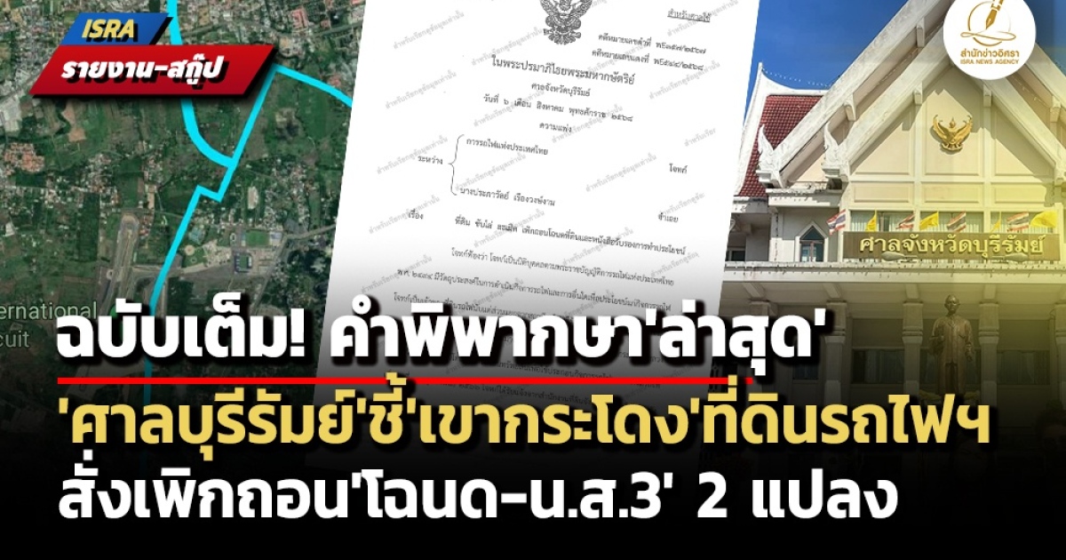 ‘ศาลจังหวัดบุรีรัมย์’พิพากษาเพิกถอน‘โฉนด-น.ส.3’ 2 แปลง ออกทับที่ดินรถไฟ‘เขากระโดง’