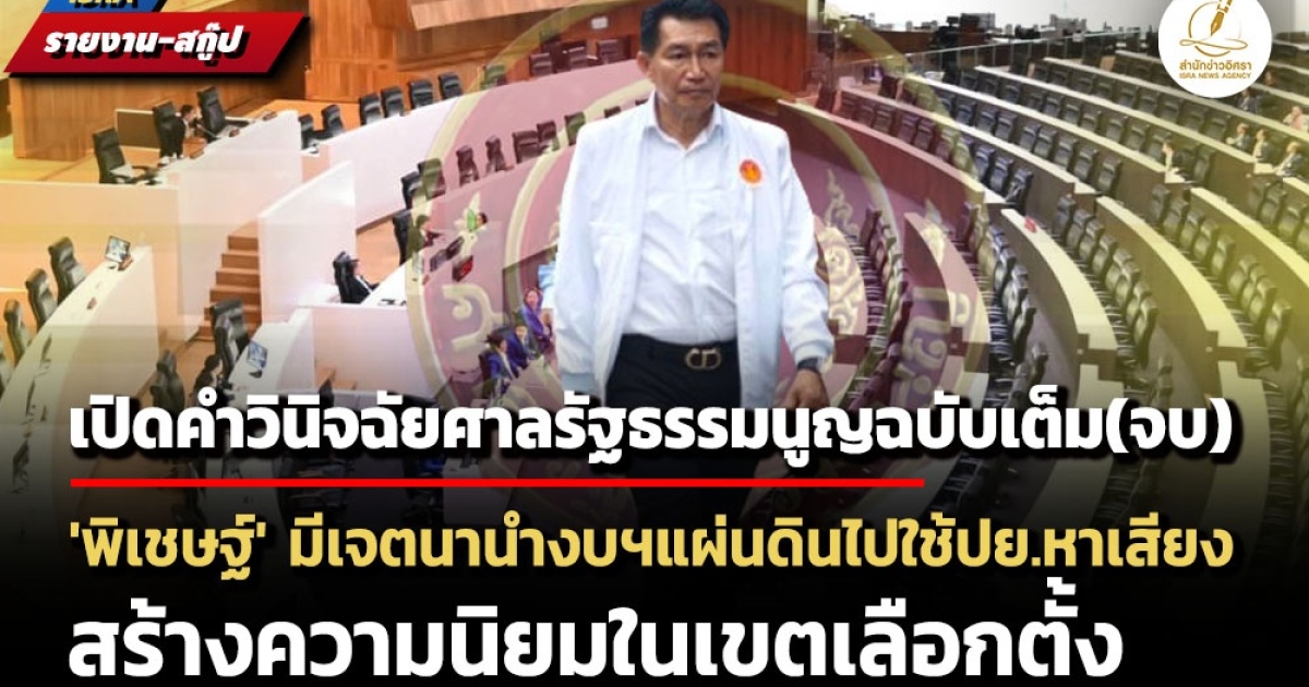 - เปิดคำวินิจฉัยศาลรัฐธรรมนูญฉบับเต็ม (1) ‘พิเชษฐ์ เชื้อเมืองพาน’ แปรญัตติงบปี 69 ลงพื้นที่ตัวเอง