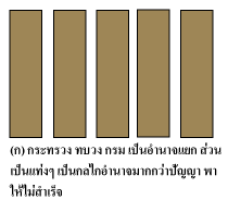 โครงสร้างแท่ง (รูป ก.) จะใช้อำนาจมากกว่าปัญญา เนื่องจากสังคมปัจจุบันมีความซับซ้อนและยาก การพัฒนาด้วยอำนาจจะไม่สำเร็จ หากทำงานด้วยโครงสร้างนี้จะไม่สำเร็จต่อการแก้ไขปัญหา เพราะทุกรัฐบาลมุ่งแต่ใช้กลไกที่เป็นทางการ