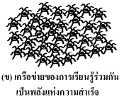 โครงสร้างแท่ง (รูป ข.) การอาศัยการเรียนรู้ร่วมกันในการปฏิบัติ (Interactive learning through action) ในแต่ละพื้นที่มีบุคคล กลุ่ม องค์กร สถาบันต่างๆ เป็นจำนวนมาก แต่ต่างคนต่างอยู่เพราะความเป็นทางการ หากบุคคล กลุ่ม องค์กร สถาบัน เชื่อมโยงกันเป็นเครือข่ายการเรียนรู้ร่วมกันในการปฏิบัติ จะเกิดอิทธิพลังแห่งความสำเร็จ (รูป ข.)