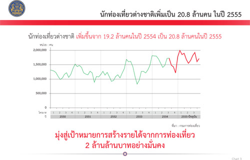 แผนภาพที่ 3 นักท่องเที่ยวต่างชาติเพิ่มขึ้นจาก 19.2 ล้านคนในปี 2555 เป็น 20.8 ล้านคน ในปี 2555