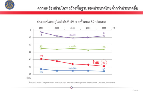 แผนภาพที่ 4 ความพร้อมด้านโครงสร้างพื้นฐานของประเทศไทยต่ำกว่าประเทศอื่น กล่าวคือ อยู่ในลำดับที่ 49 จากทั้งหมด 59 ประเทศ