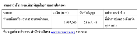 น่าสังเกตว่าในส่วนของกรมทรัพยากรน้ำนั้นเป็นโครงการที่มีการว่าจ้างในช่วงปี 2555 จำนวน 35 โครงการวงเงิน 124,565,240 บาท และเป็นโครงการรับเหมาในพื้นที่สำนักงานทรัพยากรน้ำภาค3 จ.อุดรธานี ทั้งหมด แบ่งเป็นทำสัญญาวันที่ 9 ก.พ. 2555 จำนวน 5 สัญญา วันที่ 15 ก.พ. 2555 จำนวน 15 สัญญา วันที่ 29 ก.พ. 55 1 สัญญา วันที่ 13 มี.ค. 2555 จำนวน 12 สัญญา วันที่ 20 มี.ค. 2555 จำนวน 1 สัญญา และวันที่ 23 มี.ค. 2555 จำนวน 1 สัญญา
