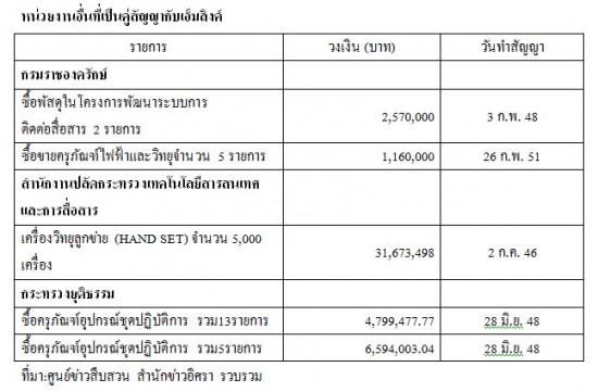 ก่อนหน้านี้วันที่ 30 ธ.ค.2551 สำนักงานคณะกรรมการกิจการโทรคมนาคมแห่งชาติ (กทช.) จัดซื้อชุดสถานีตรวจสอบการใช้ความถี่วิทยุควบคุมระยะไกล(เขตพื้นที่ภาคใต้ - ยะลา,ปัตตานี,นราธิวาส,ตรัง Control Center สงขลา) จาก บมจ.เอ็มลิ้งค์ฯ ในวงเงิน 49,800,000 บาท