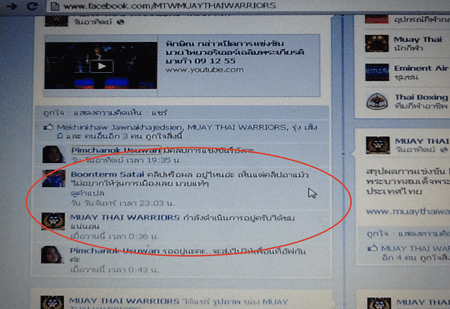 ทั้งนี้ จากการตรวจสอบข้อมูลใน แฟน เพจ FACEBOOK MUAY THAI WARRIORS พบว่ามีการระบุข้อมูลว่าเป็นองค์กร “The Master Muay Thai Championship of Thailand” (จัดการแข่งขันชิงแชมป์มวยไทยแห่งประเทศไทย) ซึ่งล่าสุดภายหลังการจัดแข่งขันมวยไทยรายการดังกล่าว แอดมิน ซึ่งใช้ชื่อว่า MUAY THAI WARRIORS ได้มีการนำ คลิปพ.ต.ท.ทักษิณ ชินวัตร อดีตนายกรัฐมนตรี เดินทางไปเป็นประธานเปิดการแข่งขันมาแชร์ลิงค์ จาก YOUTUBE ไว้ด้วย