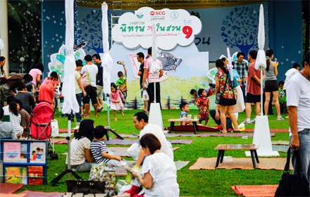 แต่มูลนิธิเอสซีจี (SCG Foundation) ได้เล็งเห็นความสำคัญในเรื่องดังกล่าว จึงทำการจัด “เทศกาลการเล่านิทาน อ่านหนังสือ” โดยมีวัตถุประสงค์เพื่อปลูกฝังให้เยาวชนสนใจและรักการอ่าน ซึ่งได้จัดติดต่อกันมาเป็นปีที่ 9 แล้ว โดยในปีนี้มีการนำนิทานและหนังสือภาพคลาสสิคระดับโลก อาทิ บินข้ามเวลา หมีตัวใหญ่ที่สุด เป็นต้น มาให้เด็กๆ ได้อ่าน
