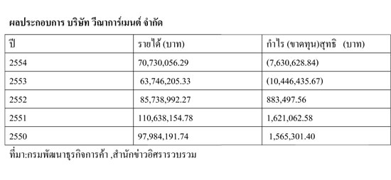 ลองมาดูงบการเงินของบริษัท วีณาการ์เมนต์ จำกัด กันหน่อย