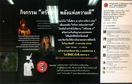 “ เพจเราอยากจัดกิจกรรม "ศรัทธา - พลังแห่งความดี" โดยร่วมกันใส่ “เสื้อสีขาว & หน้ากากสีขาว (ถ้ามี)” เพื่อแสดงถึง “ศรัทธา พลังแห่งความดี”โดยถือป้ายกำลังใจทีมงาน “เหนือเมฆ 2” พร้อมร่วมกันอธิษฐานแบบบทละครให้สิ่งศักดิ์สิทธิ์ปกป้องคนดี และเรียกร้องให้นำกลับมาออกอากาศอีกครั้ง”