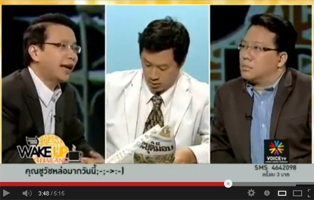 -ดูคลิปรายการ Wake Up Thailand ที่พูดถึงกรณีช่างภาพศูนย์ข่าวเนชั่นหมดสติ แล้วถูกนำตัวส่งโรงพยาบาลล่าช้า เพราะพยาบาลประจำรัฐสภาปฏิเสธจะให้ใช้รถพยาบาล